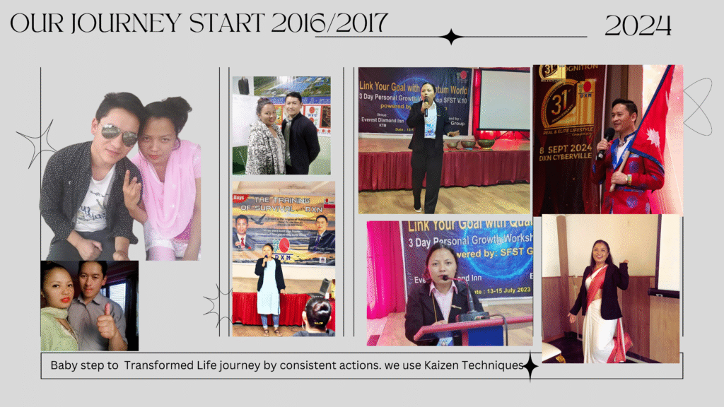 मेरी श्रीमती करुणाको स्वास्थ्यमा आएको अविश्वसनीय सुधार पछि, हामीले DXN उत्पादनहरू र यसले प्रदान गर्ने व्यापार अवसरको बारेमा गम्भीरतापूर्वक अनुसन्धान गर्न थाल्यौं। हामीले धेरै बैठकहरू (meetings), तालिमहरू (trainings), र कार्यक्रमहरू (events) मा भाग लियौं र DXN का अनुभवी विशेषज्ञहरूबाट सिक्यौं। उत्पादनहरूको प्रभावकारिता र व्यवसायको सम्भावनालाई राम्ररी बुझेपछि, हामीले आफ्नो नियमित जागिरलाई निरन्तरता दिँदै, पार्ट-टाइम (part-time) व्यवसायको रूपमा DXN गर्ने निर्णय गर्यौं।